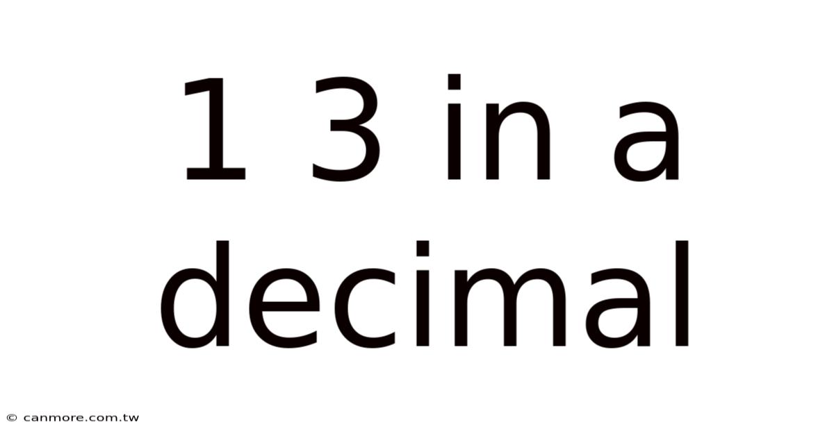 The fraction 1/3 represents one part out of three equal parts of a whole. Practically speaking, while intuitively simple, its decimal representation presents a fascinating challenge. In practice, unlike fractions like 1/2 (0. 5) or 1/4 (0.On the flip side, 25), which have finite decimal expansions, 1/3 yields a repeating decimal: 0. Plus, 333... Now, this seemingly simple difference opens a door to a deeper understanding of decimal systems and the relationship between fractions and decimals. This article will unravel the mystery behind this repeating decimal, exploring its mathematical basis and practical applications.