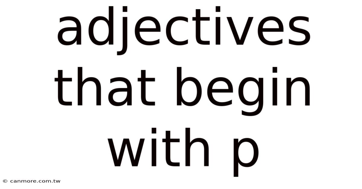 This article gets into the fascinating world of adjectives beginning with the letter "P," exploring their diverse meanings, usage, and subtle nuances. Which means understanding these descriptive words enriches your vocabulary and elevates your writing, allowing for more precise and evocative expression. We'll examine a wide range of "P" adjectives, from the common to the more obscure, providing examples to illuminate their application. This guide is perfect for writers, students, and anyone seeking to enhance their command of the English language Not complicated — just consistent..