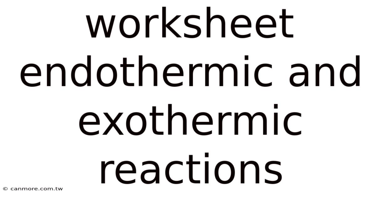 This worksheet will look at the fascinating world of endothermic and exothermic reactions, providing a solid foundation for understanding these fundamental concepts in chemistry. In real terms, we'll explore the definitions, explore examples, examine the energy changes involved, and even tackle some practical applications. By the end, you'll be equipped to confidently identify and explain these crucial reaction types. This full breakdown includes explanations, examples, and practice problems to reinforce your learning.